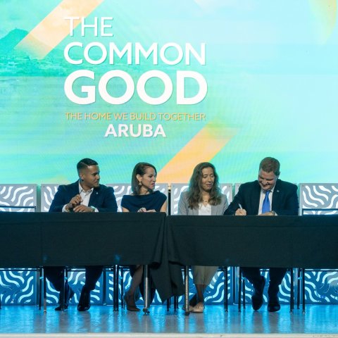 ORANJESTAD - Durante e conferencia di E Bon Comun diabierna, a firma otro MoU dunando realse na e movemento pa e bon comun. Esaki ta fortifica cooperacion den barionan y desaroyo cu cuido pa naturalesa