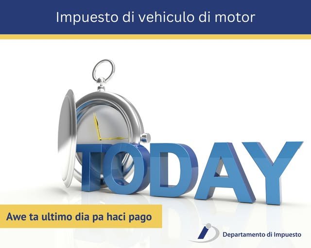 ORANJESTAD – Departamento di Impuesto ta recorda tur automovilista cu awe ta e ultimo dia pa haci pago di impuesto di vehiculo di motor 2026.