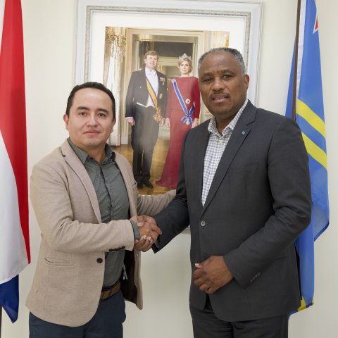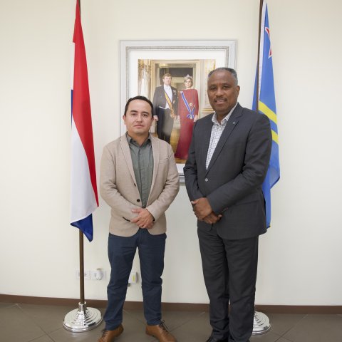 ORANJESTAD - Recientemente, Minister di Husticia, Integracion, Transporte Publico y Energia, mr. drs. Minister Arthur Dowers, a ricibi bishita di Sr. Camilo Cardenas, director of Business Development Government Americas di SITA, un lider mundial den solucionnan tecnologico pa sector di aviacion.