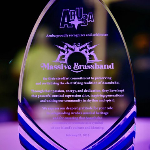 ORANJESTAD – Recently, the Aruba Tourism Authority (ATA) honored the Massive Brass Band for contributing to Aruba’s musical tradition, known as Asambeho.