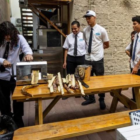 Colegio EPI visited Bodegas Papiamento, where they had the opportunity to make their own juice from sugarcane that they themselves pressed using a special machine. The students learned how Bodegas Papiamento grows many of its ingredients locally. EPB schools visited Pepe Margo Distillery, where students learned about the distillery's history and the process of producing liquor. They could see up close and understand the importance of quality and tradition in the production of a local product.