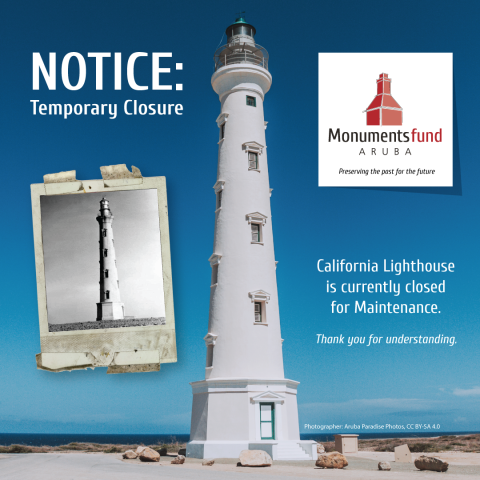 ORANJESTAD - The California Lighthouse in Hudishibana will be closed to the public from Monday, October 13, until the end of 2025 due to scheduled major maintenance work.