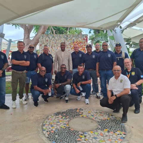 The Minister of Justice, Integration, and Public Transportation, Mr. drs. Arthur Dowers, along with Aruba Fire Department Commander Johannes de Haas, was present to wish the firefighters success during this intensive training week.