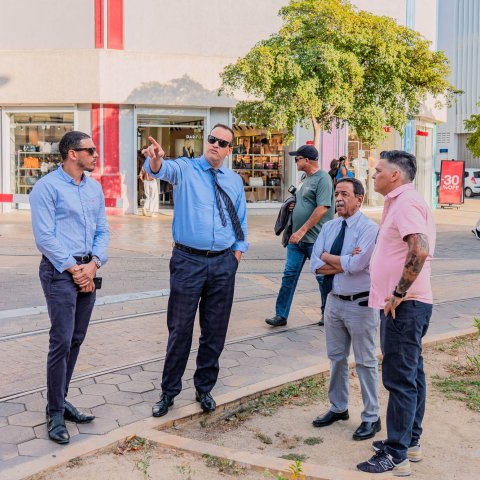 ORANJESTAD — On October 8, a tour of the city center took place with the participation of the Minister of Infrastructure, Energy, and Telecommunications, Gervais R. “Baba” Herdé, and the Minister of Finance, Economic Affairs, and Primary Sector, Geoffrey Wever.