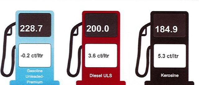 Gasoline unleaded-premium | 228,7 cent p/ltr. (- 0,2 cent) |
