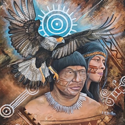 Ephraim Britten exhibits his painting 'Warawara' at the library as public art. This Warawara has a mystical, esoteric, naive expression with this bird as a powerful symbol. Perhaps the Warawara brings a message from the spirit world? This composition takes you into another era, reality, and a lost time.