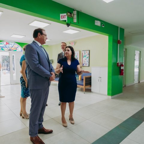 Durante e bishita di trabou, Gobernador a ricibi un recorido y un presentacion riba e metodonan di trabou di S.A.B.A., y a enfatisa riba e importancia di cuido pa e adultonan mayor na Aruba.