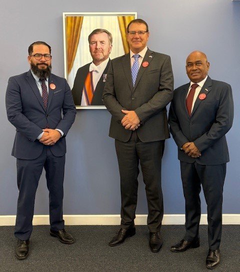 ORANJESTAD - Diabierna 24 di october 2025, Gobernador di Aruba, Su Excelencia Alfonso Boekhoudt, a ricibi di Fundacion Anti Droga Aruba (F.A.D.A.), señor Carlos Albertus, y e Director di F.A.D.A., Sr. Rhomyko Winklaar, pa un audiencia.
