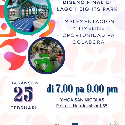 Den preparacion pa implementacion, CEDE ARUBA lo organisa un reunion di stakeholders publico riba diaranson 25 di februari 2026 na YMCA San Nicolas. E reunion aki lo trece hunto residentenan, scolnan, organisacionnan den comunidad, y otro stakeholders cu a contribui na e proceso di co-creacion. Lo invita participantenan pa wak e diseño final, ricibi un actualisacion riba e planificacion di implementacion y explora oportunidadnan pa colaboracion riba actividadnan pa comunidad, eventonan y mantencion a largo plaso di e parke.