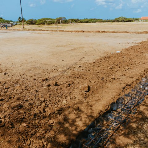 Minister di Deporte, mr. Gerlien Croes, a confirma e comienso di e construccion den presencia di representantenan di e sector deportivo, incluyendo e federacion nacional di futbol (AVB), Lotto pa Deporte y partnernan cu ta contribui activamente na realisacion di e proyecto.