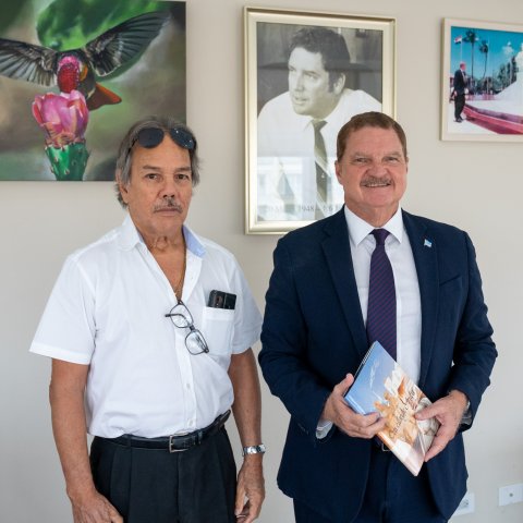 ORANJESTAD – Op 22 oktober ontving premier Mike Eman verschillende familieleden van Laura Wernet-Paskel, onder wie André “Dechi” Wernet, een man met een lange carrière en veel erkenning op Aruba.