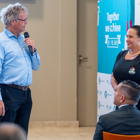 Minister van Transport, Integriteit, Natuur en Zaken van Ouderen, Ursell Arends, woonde de presentatie bij.