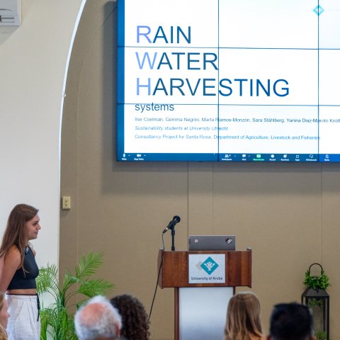ORANJESTAD - Op 9 april 2024 presenteerden zes studenten van de Universiteit Utrecht, in samenwerking met Santa Rosa en de Universiteit van Aruba, hun project "Rainwater Harvesting", oftewel het verzamelen van regenwater.
