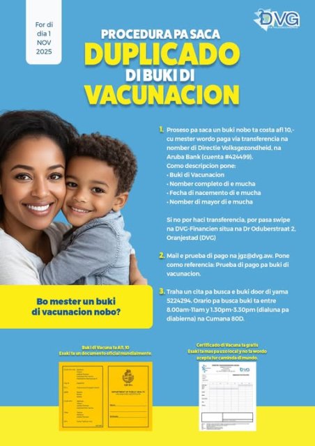 ORANJESTAD – De Afdeling Jeugdgezondheidszorg van de Dienst Volksgezondheid maakt bekend dat er per 1 november 2025 een wijziging plaatsvindt in het beleid voor het aanvragen van vaccinatieboekjes.
