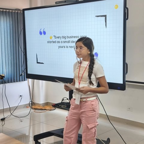 Mevrouw Louella Croes-Ras, beleidsadviseur Bedrijfsontwikkeling bij IDEA, leidde de workshop. Ze begeleidde een sessie over het pitchen van bedrijfsideeën, waarbij alle deelnemers hun concepten aan de groep konden presenteren. Veel kinderen waren aanvankelijk zenuwachtig, maar presenteerden hun ideeën later vol zelfvertrouwen en trots.