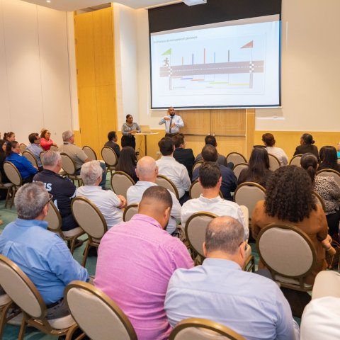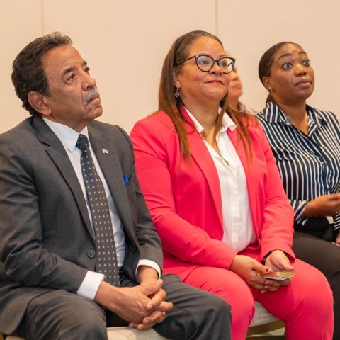Minister di Vivienda y Infrastructura, Sr. Baba Herdé na su turno tambe a yama tur hende bon bini, a expresa su gratitud pa e asistencia masal na e presentacion aki y a enfatisa e importancia di TERENO Connect y e impacto positivo cu un plataforma asina por trece no solamente pa DLV, pero pa Aruba henter.