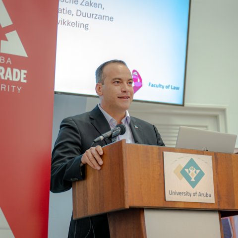 Den cuadro di esaki, Aruba Fair Trade Authority a organisa un charla na Universidad di Aruba caminda a expande riba e esfuersonan andando, ambos pa proteccion di compe-tencia husto, pero principalmente riba e tereno di proteccion di consumido.